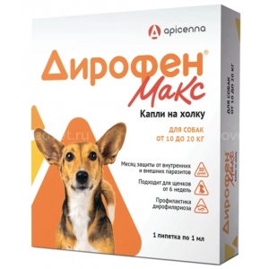 О товаре Дирофен Макс 120 мг для собак от 10 до 20 кг, 1 пипетка х 1 мл