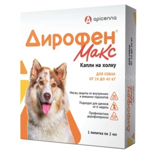 Дирофен Макс 120 мг для собак от 20 до 40 кг, 1 пипетка х 2 мл