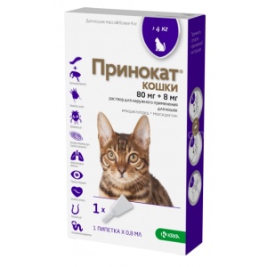ПРИНОКАТ капли на холку для кошек более 4 кг для обработки кошек от наружных и внутренних паразитов.